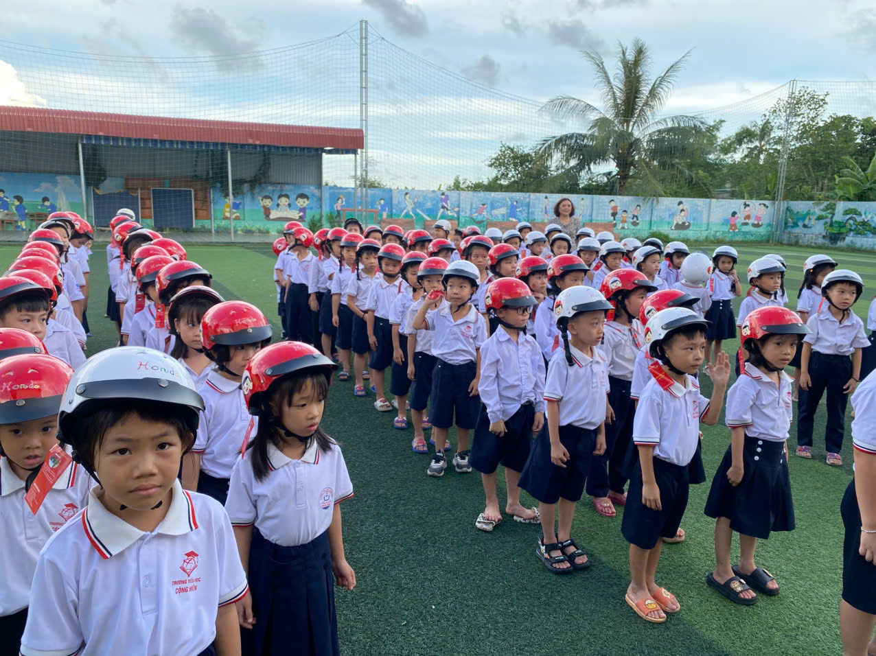 Cô rất vui và tự hào khi thấy các em thực hiện tốt việc đội mũ bảo hiểm mỗi ngày. Mong rằng các em sẽ luôn ghi nhớ: Ra đường là phải đội mũ bảo hiểm, nhắc nhở bố mẹ và người thân cùng chấp hành luật giao thông để mỗi ngày đến trường đều là một ngày vui và an toàn.