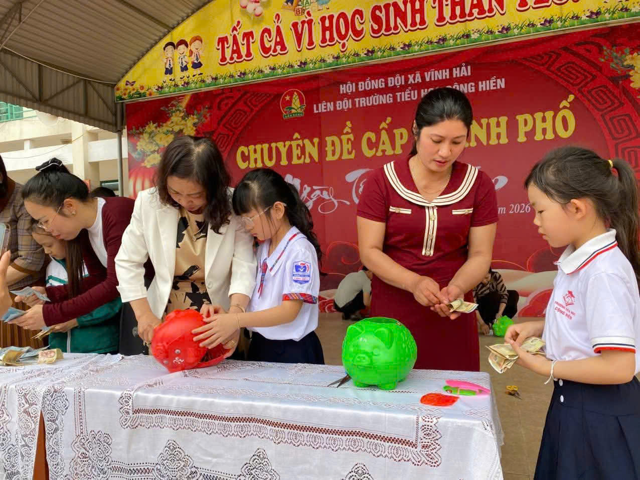 Sáng thứ 2 ngày 02/03/2026 Liên đội tổ chức: Tổng kết phong trào "Nuôi lợn siêu trọng"giúp HS có hoàn cảnh khó khăn trong và ngoài nhà trường.